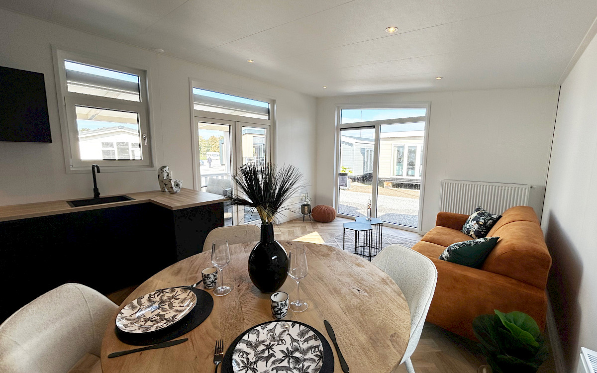 Träumen Sie von einem eigenen Platz in einem wunderschönen Ferienpark, ohne viel Aufwand? Dann entscheiden Sie sich für das Volente Deluxe 1100/2 im Ferienpark De Boomgaard – ein Chalet inklusive Stellplatz, das sofort bezugsfertig ist.