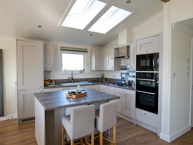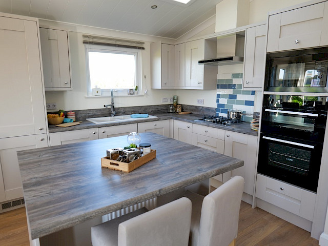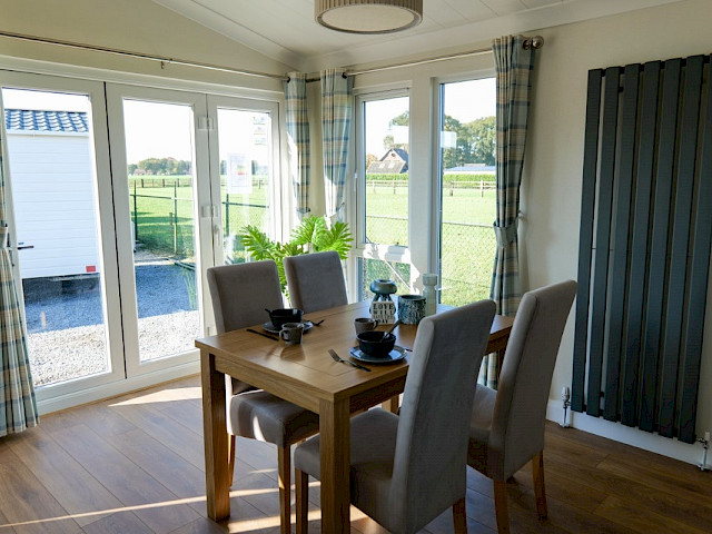 Das Willerby Acorn ist ein geräumiges Doppelchalet in der Farbe Anthrazit. Es verfügt über eine Küche mit Insel und ein geräumiges Wohn- und Esszimmer mit großen Fenstern für einen optimalen Blick nach draußen. Außerdem verfügt dieses Chalet über ein Schlafzimmer, ein eigenes Badezimmer mit extra Platz für eine Waschmaschine, ein zweites (Schlaf-)Zimmer und eine separate Toilette. Die Gänge sind sehr geräumig, so dass dieses Chalet auch als Pflegeheim genutzt werden kann.