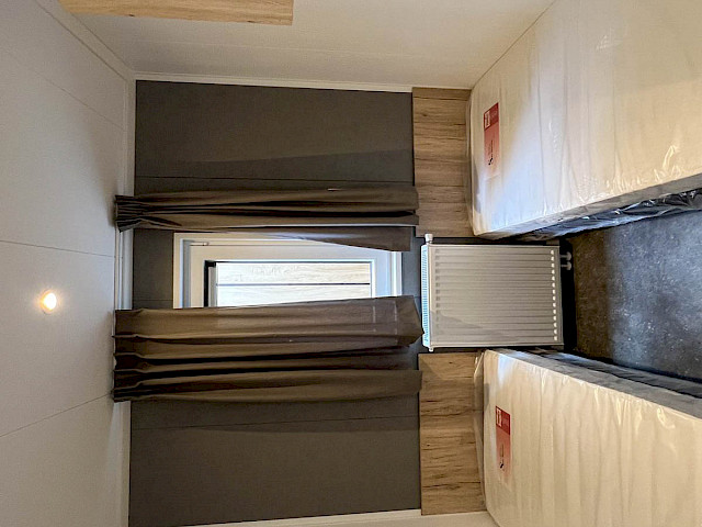 Direkt verfügbar Volente Special. Möchten Sie dieses Volente Special diesen Sommer genießen? Dann besuchen Sie schnell unser Ausstellungsgelände in Kamperland, um dieses lustige und gut ausgestattete Freizeitchalet zu besichtigen. Dieses Volente Special hat ein schönes lehmfarbenes Äußeres mit weißen Fensterrahmen und anthrazitfarbenen Fensterläden. Zwei Schlafzimmer, eines davon mit Etagenbett und ein schönes Badezimmer mit Akzentwand. Darüber hinaus wurden im gesamten Chalet verschiedene luxuriöse und optische Details eingebaut, wie z. B. ein Dimmer, plissierte Vorhänge, eine Rückwand in der Küche und eine luxuriöse Badezimmereinrichtung. Darüber hinaus ist dieses Modell bereits mit einer hochwertigen Klimaanlage ausgestattet.