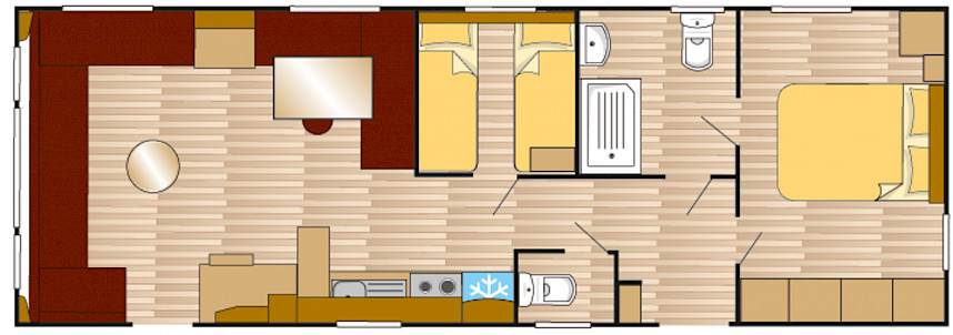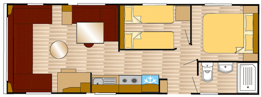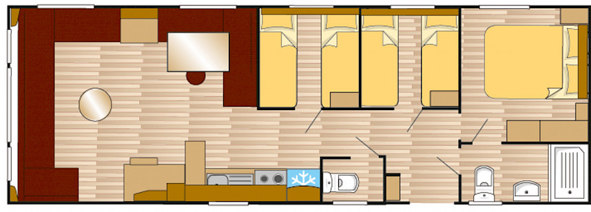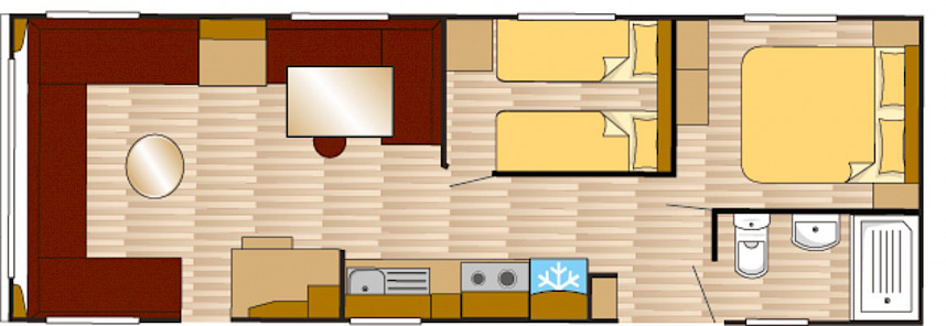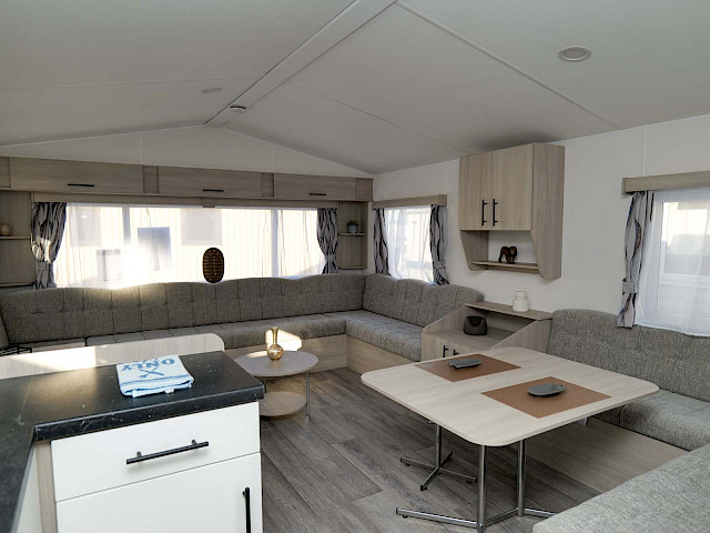 Der Diran ist ein schönes und kompaktes Modell mit vielen Aufbewahrungsmöglichkeiten. Das Diran verfügt über viele attraktive Elemente, wie zum Beispiel einen atmosphärischen Kamin. Außerdem hat dieses Mobilheim ein gutes Preis-Qualitäts-Verhältnis und kann natürlich mit verschiedenen Luxusoptionen aufgerüstet werden.