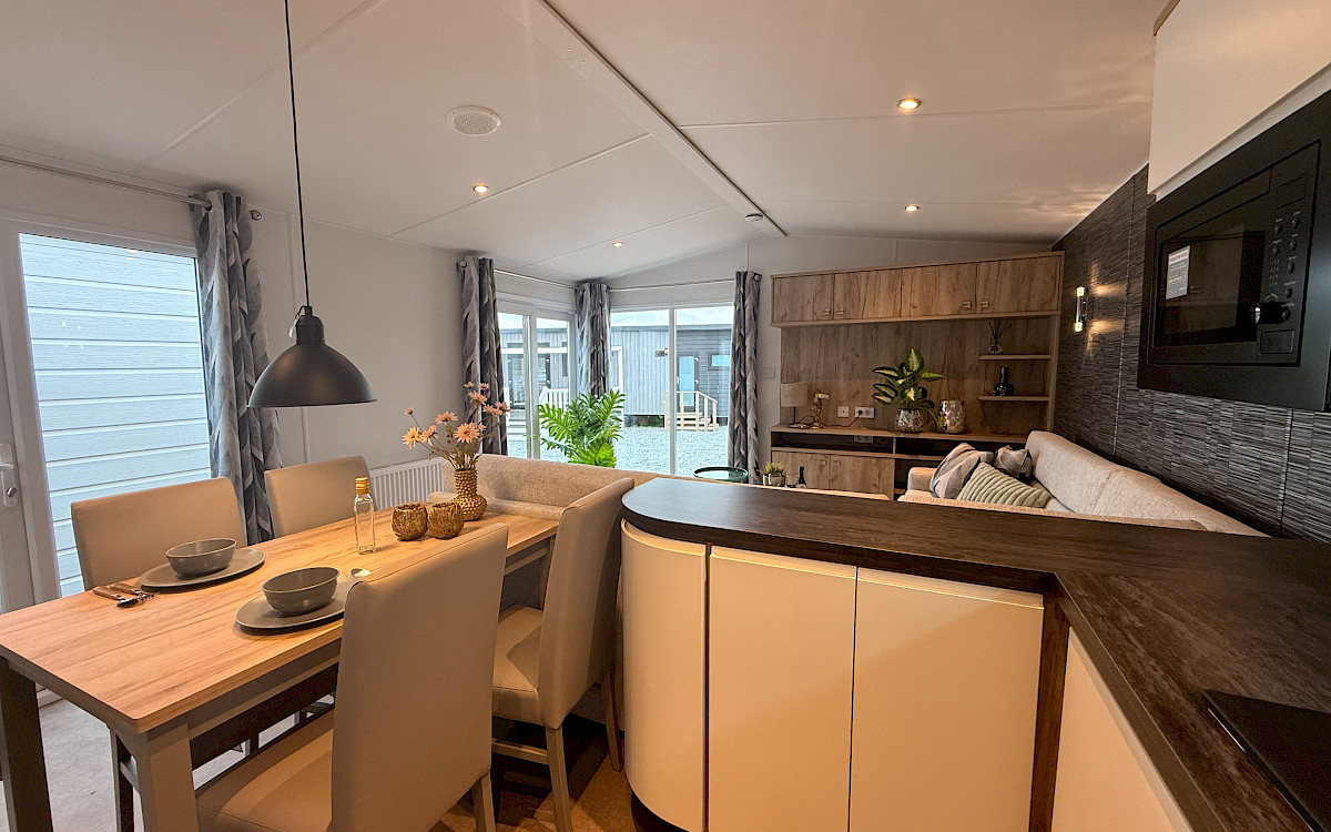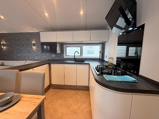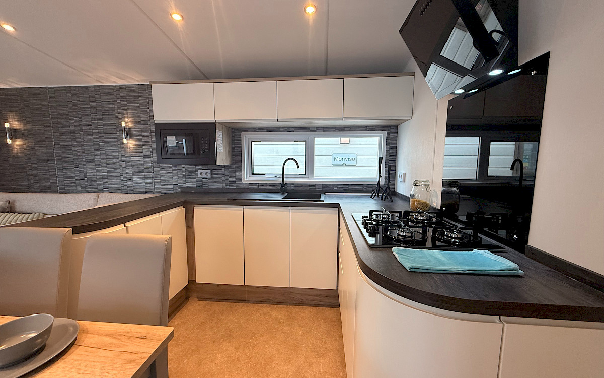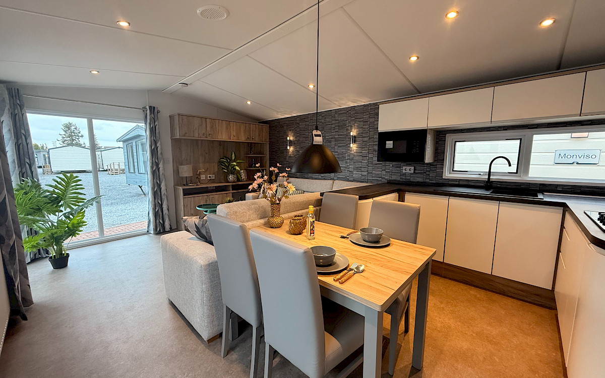 Das Modell Montana ist ein äußerst komplettes und einzigartiges Mobilheim. Sind Sie auf der Suche nach Komfort und Luxus? Dann gehen Sie für die Montana. Beim Betreten werden Sie sofort bemerken, was die Scala so einzigartig macht. Das Modell zeichnet sich durch moderne Farbkombinationen, komfortable Möbel und eine sehr luxuriöse Küche aus. Auch im Bad und in den Schlafzimmern wird dies wiederholt. Dies macht die Montana zu einem sehr beliebten Modell bei Familien!