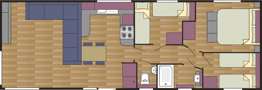 Das Modell Montana ist ein äußerst komplettes und einzigartiges Mobilheim. Sind Sie auf der Suche nach Komfort und Luxus? Dann gehen Sie für die Montana. Beim Betreten werden Sie sofort bemerken, was die Montana so einzigartig macht. Das Modell zeichnet sich durch moderne Farbkombinationen, komfortable Möbel und eine sehr luxuriöse Küche aus. Auch im Bad und in den Schlafzimmern wird dies wiederholt. Dies macht die Montana zu einem sehr beliebten Modell bei Familien!
