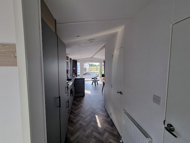 Dieses schöne Mobilheim bietet einen geräumigen Eingangsbereich, in dem Sie mühelos Mäntel und Taschen aufhängen können. Der großzügige Eingang vermittelt sofort ein Gefühl von Raum und Gastfreundschaft, so dass Sie sich sofort wie zu Hause fühlen. Der Ocean Super Plus verfügt über eine moderne U-förmige Küche mit Herd, Dunstabzugshaube, eingebautem Kühlschrank und Gefrierschrank. Es gibt sogar Platz für eine Mikrowelle und die Möglichkeit, einen Geschirrspüler hinzuzufügen, so dass Sie komplett ausgestattet sind.