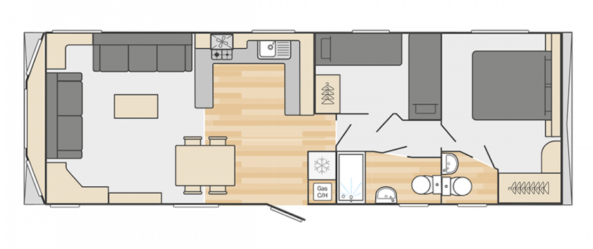 Sie wollen ein Wohnmobil kaufen, um es zu genießen? Dann werfen Sie einen Blick auf diesen schönen Swift Provence! Gut isolierte, sandbeige" Außenverkleidung mit weißen Fensterrahmen und schickem Interieur. Wenn Sie dieses Modell betreten, sehen Sie eine luxuriöse U-Küche mit goldfarbenen Armaturen und ein schönes Wohnzimmer. Durch eine Verbindungstür gelangen Sie in den Schlafbereich dieses Mobilheims. Zwei große Schlafzimmer mit luxuriösen Details und ein schönes Badezimmer sorgen dafür, dass Sie sich während Ihres Aufenthalts gut erholen können. Neugierig auf den Swift Provence? Besuchen Sie unseren Ausstellungsraum!
