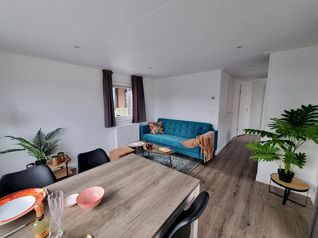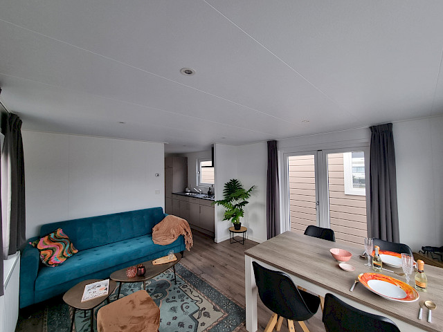 Der Vulture verfügt über eine reich ausgestattete Küche, ein gemütliches, geräumiges Wohnzimmer mit Terrassentüren und natürlich zwei schöne Schlafzimmer und ein Badezimmer. Dieses Modell können Sie nach Ihren Wünschen anpassen, indem Sie beispielsweise zusätzliche Luxusoptionen hinzufügen. Darüber hinaus ist das Modell Vulture ein Green Label-Chalet. Das bedeutet, dass es mit bis zu 12 cm dicken Außenwänden gut isoliert ist, aber auch, dass es vollständig elektrisch ausgestattet ist. Außerdem wird dieses Modell in unserer vollständig energieneutralen Fabrik in den Niederlanden gebaut, sodass wir echte niederländische Qualität mit der Niedrigpreisgarantie anbieten können.