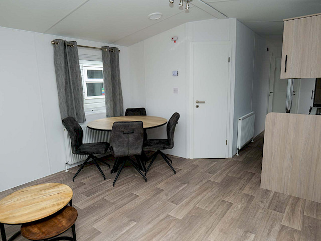 Nach den beliebten Modellen WoodRidge, Volente Special und Rushmore haben wir nun ein neues Modell mit luxuriöser Außenverkleidung in Holzoptik in unser umfangreiches Sortiment aufgenommen: Das Bergjes Woodline. Ein trendiges Chalet dank der Kombination der Woodlook-Außenverkleidung mit anthrazitfarbenen Fensterrahmen zu einem sehr attraktiven Preis. Außerdem ist das Bergjes Woodline mit 12 cm dicken Wänden extra isoliert und im Inneren finden Sie allen Luxus, den Sie für einen idealen Urlaub brauchen. Eine reich ausgestattete Eckküche mit integriertem Geschirrspüler und Kühl-Gefrierkombination. Im Wohnzimmer finden Sie viel Platz und Licht durch die Gartentüren und großen Fenster. Zur weiteren Ausstattung gehören begehbare Kleiderschränke im Hauptschlafzimmer und ein luxuriöser Waschbeckenunterschrank im schönen Badezimmer.