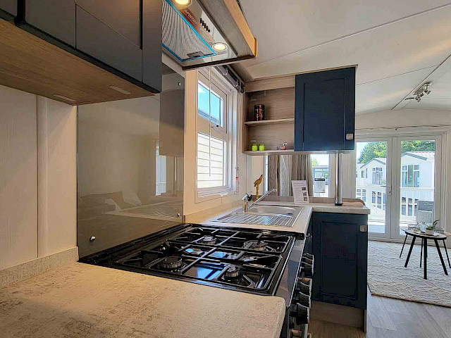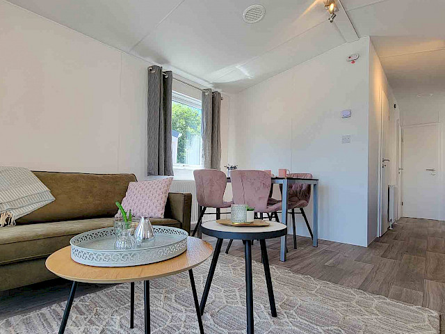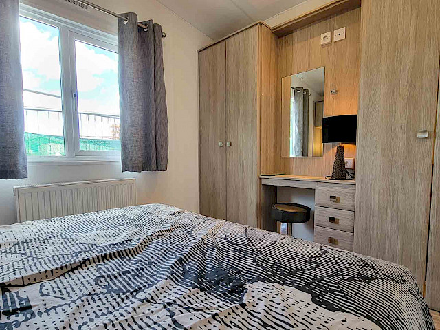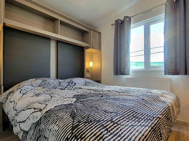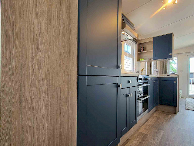 Nach den beliebten Modellen WoodRidge, Volente Special und Rushmore haben wir nun ein neues Modell mit luxuriöser Außenverkleidung in Holzoptik in unser umfangreiches Sortiment aufgenommen: Das Bergjes Woodline. Ein trendiges Chalet dank der Kombination der Woodlook-Außenverkleidung mit anthrazitfarbenen Fensterrahmen zu einem sehr attraktiven Preis. Außerdem ist das Bergjes Woodline mit 12 cm dicken Wänden extra isoliert und im Inneren finden Sie allen Luxus, den Sie für einen idealen Urlaub brauchen. Eine reich ausgestattete Eckküche mit integriertem Geschirrspüler und Kühl-Gefrierkombination. Im Wohnzimmer finden Sie viel Platz und Licht durch die Gartentüren und großen Fenster. Zur weiteren Ausstattung gehören begehbare Kleiderschränke im Hauptschlafzimmer und ein luxuriöser Waschbeckenunterschrank im schönen Badezimmer.