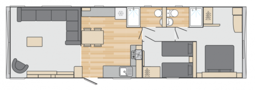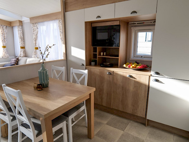 Der Swift Biarritz Lodge ist ein sehr komplettes Modell. Neben den unten aufgeführten Optionen verfügt dieses Modell sogar über eine Waschmaschine/Trockner in 1, ein Soundsystem, ein Dachfenster und ein zweites Badezimmer!