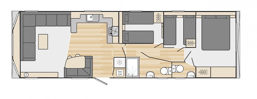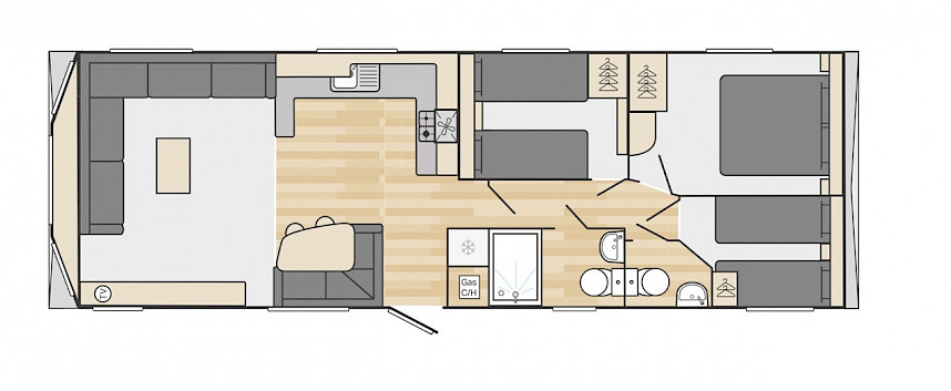 Die Loire ist leicht, lustig, funktionell und von der Küste inspiriert. Sie können zwischen Modellen von 10 und 11 Metern Länge wählen. Der Loire ist wirklich ein familienfreundliches Freizeitchalet und bietet ein gutes Preis-Leistungs-Verhältnis sowie sehr umfangreiche Möglichkeiten. Im Wohnzimmer finden Sie zum Beispiel eine geräumige Eckbank, die auch als Schlafsofa genutzt werden kann. Die geräumige Küche ist mit robusten Edelstahlgriffen und Luxusgeräten ausgestattet. Die Schlafzimmer sind mit Luxusmatratzen und einem Fernsehanschluss ausgestattet. Neugierig geworden? Sie sind herzlich eingeladen, sich dieses Modell in unserem Ausstellungsraum anzuschauen.