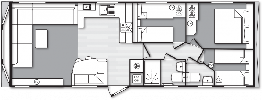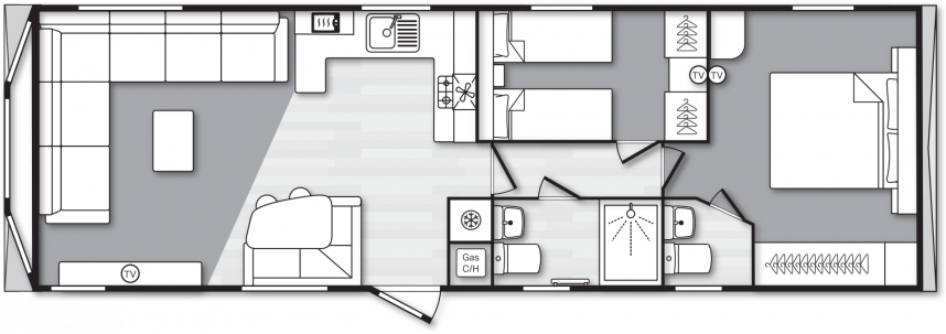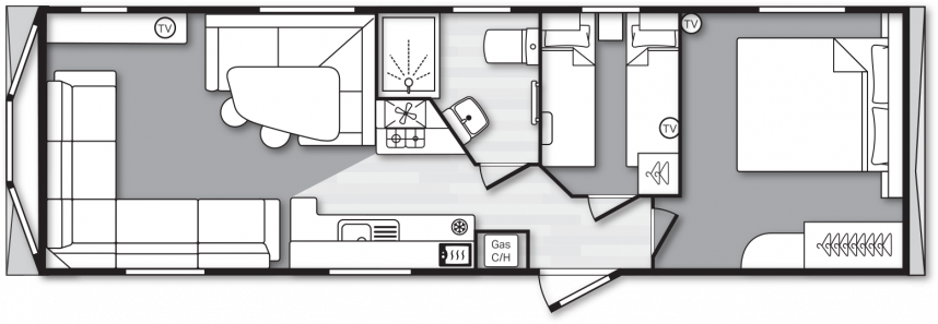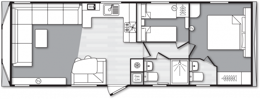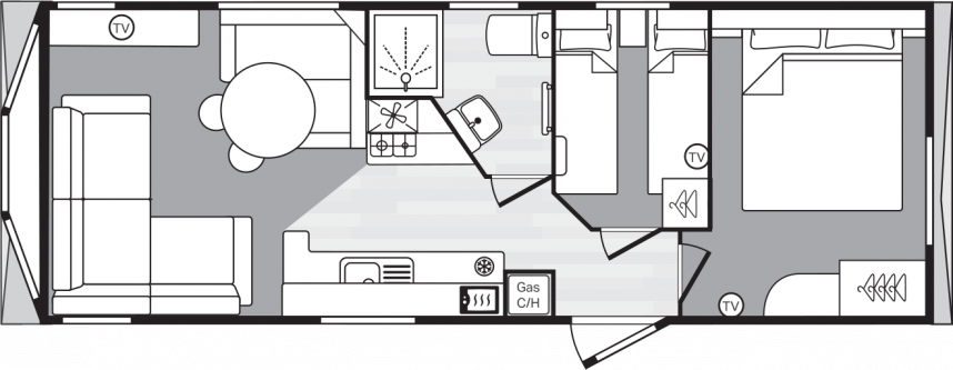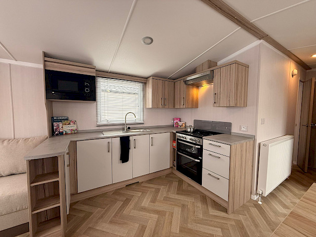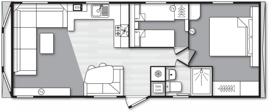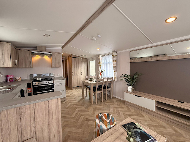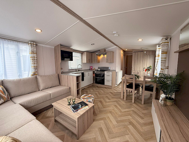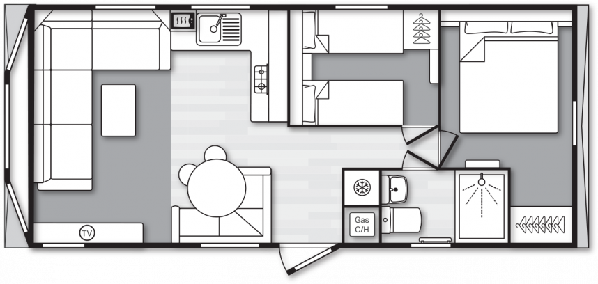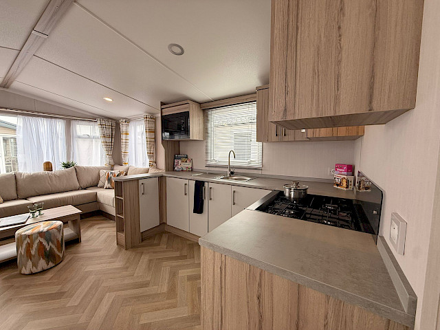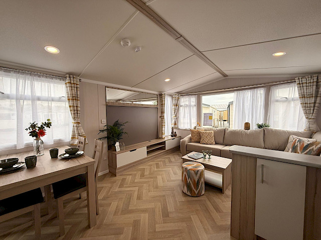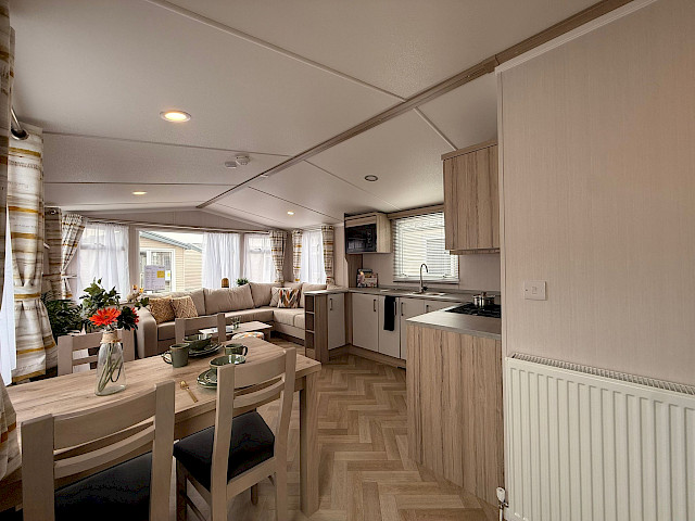 Der Swift Loire wirkt schon beim Betreten geräumig und offen. Das Wohnzimmer ist mit dem Essbereich und der Küche verbunden, sodass man leicht zusammen sein kann, auch wenn jeder gerade etwas anderes macht. Der Loire wird komplett möbliert übergeben, mit einer großen Eckcouch, einem Esstisch mit fest angebauter Bank und allem, was man braucht, um ihn sofort nutzen zu können. Die Küche ist je nach Größe in L- oder U-Form angelegt und komplett mit Herd, Backofen, Mikrowelle und Kühl-Gefrierkombination ausgestattet. Im Wohnzimmer befindet sich außerdem ein Klappbett, was praktisch ist, wenn jemand über Nacht bleibt, ohne dass sich der tägliche Ablauf ändert. Die Raumaufteilung ist auf das Zusammenleben ausgerichtet, mit ausreichend Stauraum, schönen Schlafzimmern und bei den größeren Modellen sogar einer separaten Toilette, was besonders angenehm ist, wenn man mit mehreren Personen dort wohnt.