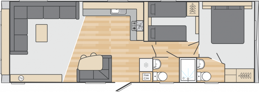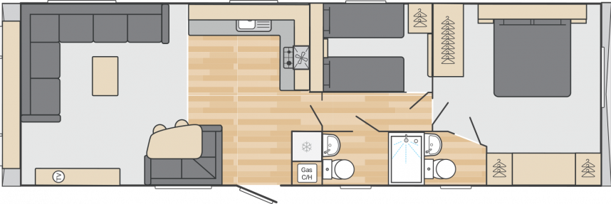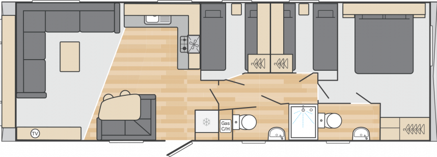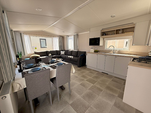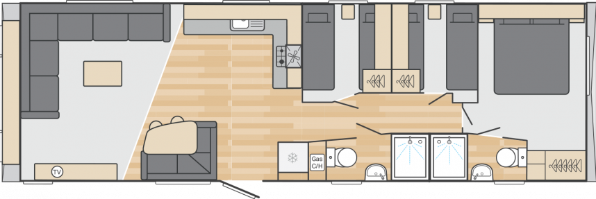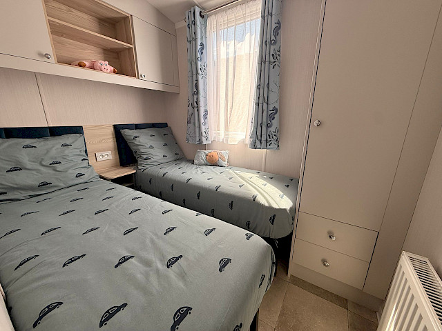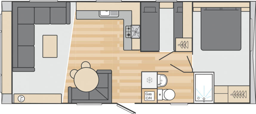 Ob Sie ein Urlaubsbegeisterter sind, der nach einem eigenen Freizeitdomizil sucht, oder ein Campingplatz- oder Ferienparkbesitzer, der seinen Gästen das Beste bieten möchte – der Swift Loire bietet alles, was Sie brauchen, um Ihren Aufenthalt sofort zu genießen. Dieses Mobilheim ist vollständig möbliert und mit modernen Möbeln ausgestattet, darunter eine stilvolle Eckcouch, die in ein Schlafsofa umgewandelt werden kann, ein Esstisch mit vier Stühlen, ein Couchtisch, ein TV-Möbel und Vorhänge. Auch die Küche ist reichhaltig ausgestattet mit einem Backofen, einer Mikrowelle, einem Kühlschrank, einem Gasherd und einer Dunstabzugshaube. Der Loire verfügt über zwei Schlafzimmer: ein Hauptschlafzimmer mit eigenem WC und ein zweites Schlafzimmer mit zwei Einzelbetten – ideal für Kinder oder Gäste. Das Badezimmer ist mit einer Duschkabine, einer Toilette, einem Waschbecken und einem Designheizkörper ausgestattet. Dank der Zentralheizung ist Komfort das ganze Jahr über garantiert. Der Swift Loire ist die ideale Wahl für alle, die nach einem voll ausgestatteten und komfortablen Mobilheim suchen – sofort bezugsfertig und für ultimativen Komfort und Luxus ausgelegt.