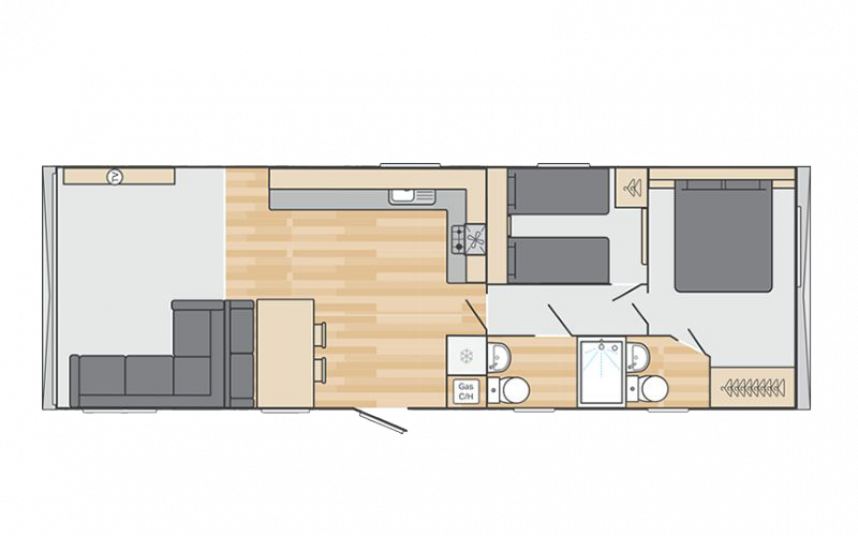 Dieses Mobilheim ist auf optimalen Komfort ausgelegt und bietet mit seiner intelligenten Aufteilung Raum für Entspannung und Zweisamkeit. Ob für einen erholsamen Wochenendausflug oder einen längeren Urlaub, der Swift Morlaix ist ein stimmungsvoller Zufluchtsort für alle, die eine gemütliche und moderne Unterkunft suchen.