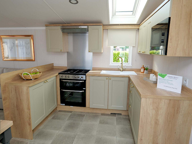 Sie wollen ein Wohnmobil kaufen, um es zu genießen? Dann werfen Sie einen Blick auf diesen schönen Swift Provence! Gut isolierte, sandbeige" Außenverkleidung mit weißen Fensterrahmen und schickem Interieur. Wenn Sie dieses Modell betreten, sehen Sie eine luxuriöse U-Küche mit goldfarbenen Armaturen und ein schönes Wohnzimmer. Durch eine Verbindungstür gelangen Sie in den Schlafbereich dieses Mobilheims. Zwei große Schlafzimmer mit luxuriösen Details und ein schönes Badezimmer sorgen dafür, dass Sie sich während Ihres Aufenthalts gut erholen können. Neugierig auf den Swift Provence? Besuchen Sie unseren Ausstellungsraum!