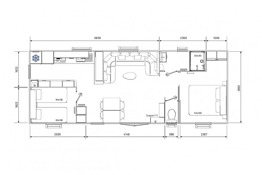 Mit einem großen offenen Wohnzimmer, einer luxuriösen Küche und zwei separaten Schlafzimmern ist der Expression ideal, um den Komfort mit Freunden und Familie zu genießen.
