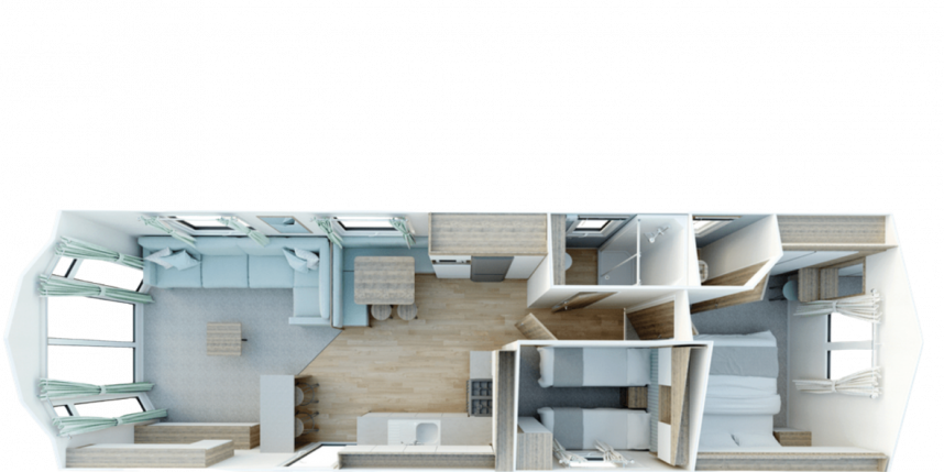 Das Willerby Brookwood ist ein Mobilheim mit einem einzigartigen Grundriss! Dieses Mobilheim erfüllt auch den Willerby GreEN Standard, was bedeutet, dass dieses Modell einen nachhaltigeren Energieverbrauch hat. Dies trägt zur Bekämpfung des Klimawandels bei, aber natürlich auch günstiger bei den Energiekosten.