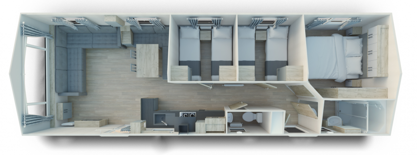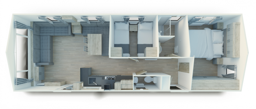 Benannt nach den Cristallo-Bergen in Italien, ist dieses Modell eine schöne Ergänzung unseres Sortiments. Dieses Mobilheim ist extra breit, und das merkt man auch an seiner Geräumigkeit. Die großen Fenster lassen viel Licht herein, so dass Sie die Umgebung noch mehr genießen können. Die Verwendung von Farbe in diesem Modell ist frisch und sehr modern. Dieses Mobilheim erfüllt auch den Willerby GreEN Standard, was bedeutet, dass dieses Modell einen nachhaltigeren Energieverbrauch hat. Dies trägt zur Bekämpfung des Klimawandels bei, ist aber natürlich auch günstiger bei den Energiekosten.