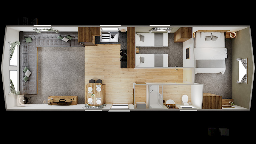 Das Ellerton wurde sorgfältig entworfen, um die verfügbare Bodenfläche optimal zu nutzen, sodass genügend Platz für die ganze Familie vorhanden ist. Die praktische L-förmige Küche bietet viel Platz zum gemeinsamen Kochen, während der offene Wohnbereich dafür sorgt, dass Sie immer mit Ihrer Familie oder Ihren Freunden in Kontakt bleiben. Die Schlafzimmer bieten alles, was Sie brauchen: ein bequemes Bett und genügend Stauraum für Kleidung und persönliche Gegenstände.