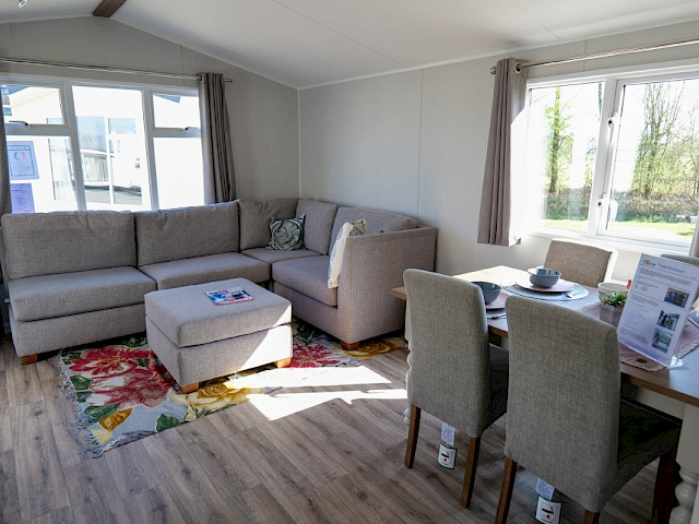 Wenn Sie sich für das Willerby Lumic-Möbelpaket entscheiden, erhalten Sie graue Vorhänge in den Schlafzimmern, bunte Vorhänge im Wohnzimmer, einen Esstisch mit 4 Stühlen, ein Schlafsofa, einen Hocker, einen Fernsehschrank und einen Couchtisch.