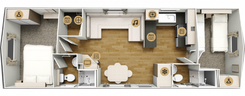 Mit seinem hellen und geräumigen Center-Lounge-Layout ist The Martin ideal für den Austausch mit Freunden und Familie. Jedes Schlafzimmer hat Zugang zu einem eigenen Duschbad, um die Privatsphäre und den nötigen Platz zu gewährleisten.