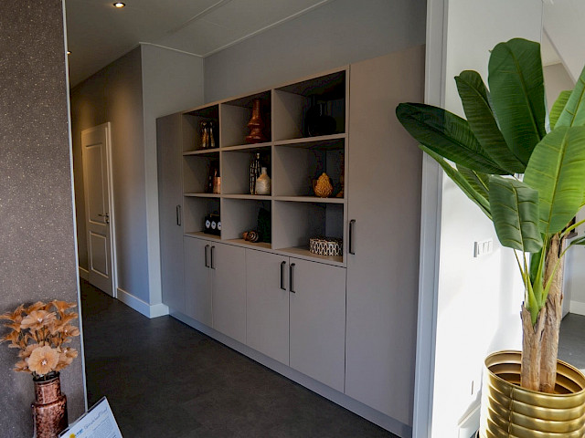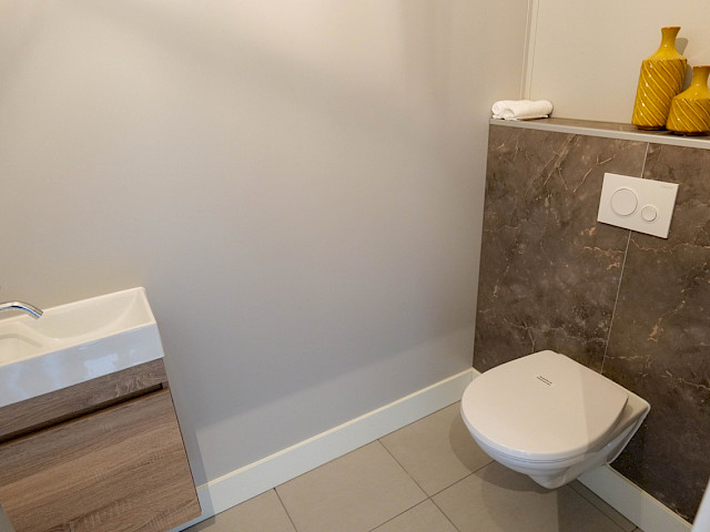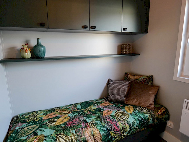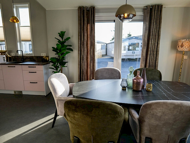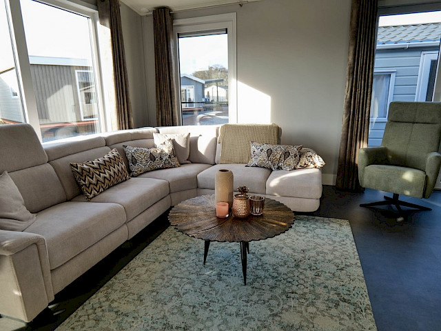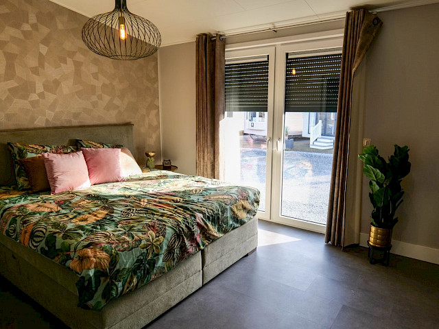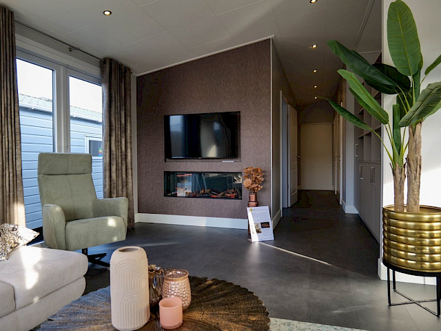 Comme son nom l'indique, il s'agit d'un "Twin-chalet" ou d'un chalet double. Comme il y a deux parties placées l'une contre l'autre, il y a beaucoup d'espace et aussi beaucoup de possibilités. La particularité est que dans ce modèle, un passage a été créé entre la chambre à coucher et la salle de bains. La cuisine a un toit surélevé. Cela donne à ce modèle l'impression d'être un bungalow de luxe. En outre, il s'agit de la variante ECO, ce qui signifie qu'elle est entièrement électrique !