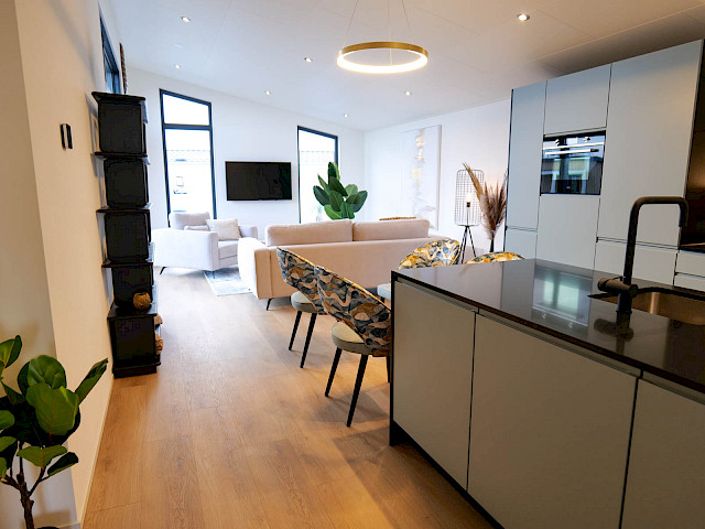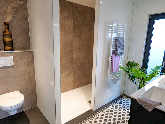 La Silvretta-L a un look branché grâce à sa forme en L avec un toit pentu et des combinaisons de revêtements extérieurs. Le salon spacieux bénéficie d'une grande luminosité grâce aux hautes fenêtres et aux portes coulissantes. La cuisine luxueuse de cette maison de soins est équipée d'une péninsule avec évier. En outre, vous trouverez dans cette maison de soins une chambre à coucher spacieuse, avec salle de bains attenante, une salle de loisirs ou une deuxième chambre, des toilettes séparées et une salle de rangement avec placard coulissant.