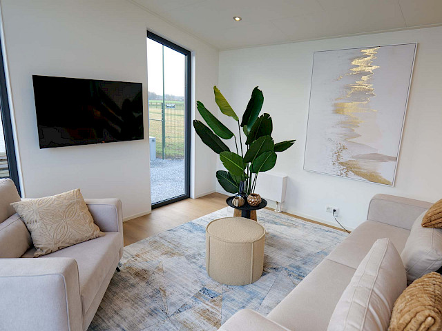 Vous pouvez personnaliser ce chalet à votre guise en choisissant, par exemple, une cuisine ou un plan de travail de couleur différente ou en optant pour une formule écologique à votre convenance afin que le chalet soit entièrement électrique. Vous êtes également libre de choisir un sol ou un revêtement extérieur différent. Vous êtes curieux ? N'hésitez pas à visiter notre site d'exposition.