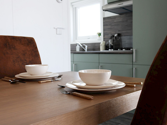 Le Duinhuis est comparable au Sorrento et au Jolie, le Duinhuis dispose cependant d'un toit pupitre par défaut! Cela donne au mobil-home un look très moderne. Vous pouvez composer le Duinhuis entièrement en fonction de vos souhaits et il peut être agrandi grâce aux différentes options. Vous préférez un mobil-home avec un toit plat au lieu d'un toit pupitre, optez dans ce cas pour le De Bergjes Duinhuis.