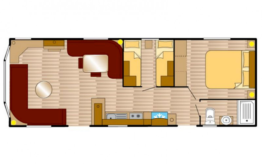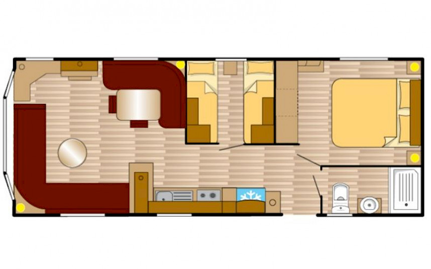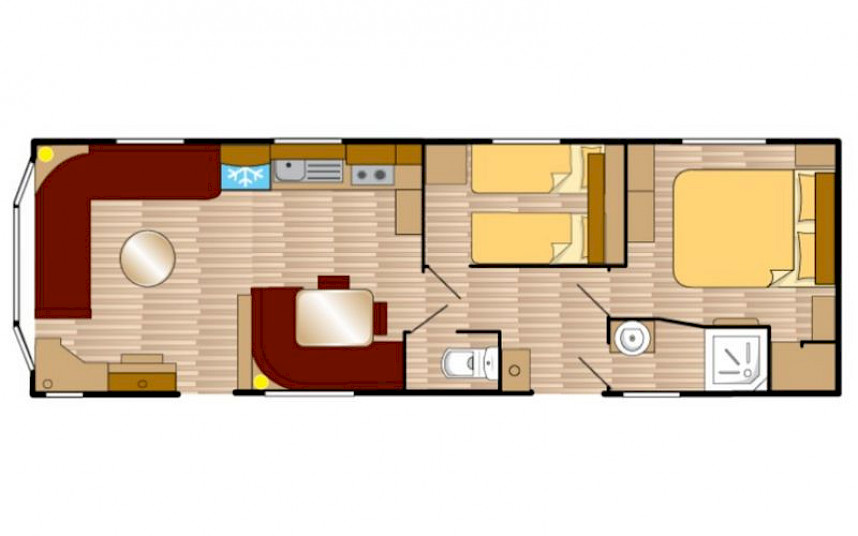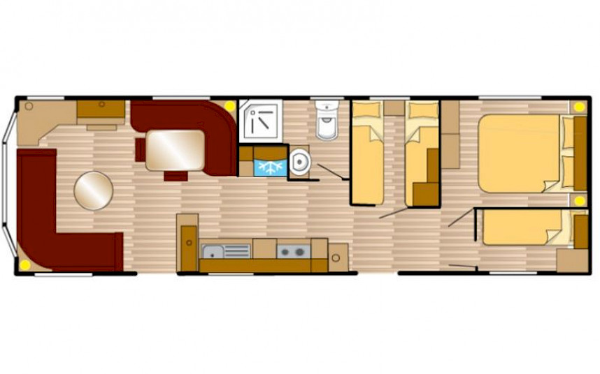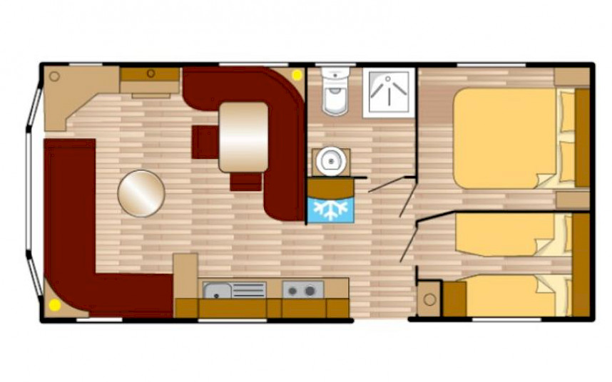 Le modèle Siëra est un mobil-home élégant et caractéristique avec un charme reconnaissable grâce à la forme unique de la baie vitrée à l'avant. De plus, le modèle a Siëra dispose de nombreuses options attrayantes telles qu'un salon entièrement équipé, une cuisine entièrement équipée et une façade extérieure luxueuse. Le modèle Siëra est adapté à la création d'un parfait pour passer des vacances en famille. Le Siera standard dispose d'un poêle Truma dans le salon. Ce modèle est équipé d'un chauffage central (en option)