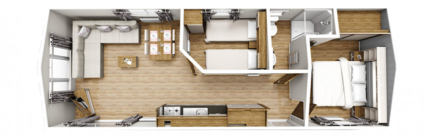 Notre Premium Chalet est construit selon des normes exceptionnelles ! Vous adorerez la solidité du Premium Chalet et l'équipement luxueux du Premium Chalet. Le Premium Chalet est très bien isolé et peut être utilisé en été comme en hiver. De plus, le Premium Chalet est livré de série avec les options les plus luxueuses, que l'on peut voir dans la salle de bain, la cuisine et les chambres ! En raison de ses dimensions spacieuses, ce modèle est très spacieux !