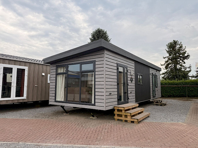 Le Ruby Special black attire immédiatement l'attention. La façade extérieure moderne aux tons gris avec des accents noirs épurés, le toit en appentis élégant et les grandes baies vitrées confèrent au chalet un aspect contemporain et garantissent une grande luminosité naturelle.