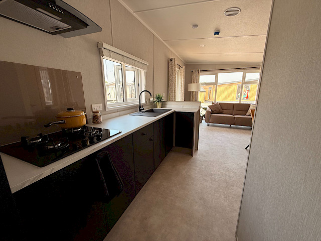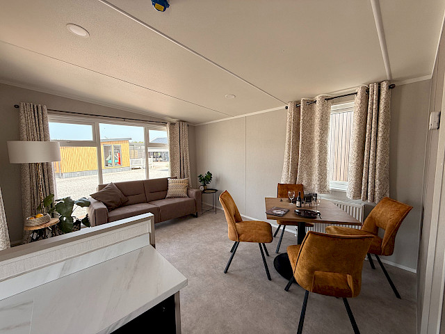À l'intérieur, tout est réuni : style, fonctionnalité et souci du détail. La cuisine est équipée de façades de placards taupe clair, d'un plan de travail aspect marbre et de touches noires qui lui confèrent un aspect frais. Le salon et les chambres sont intelligemment agencés et offrent de nombreux espaces de rangement.