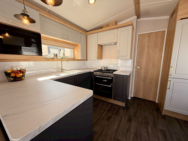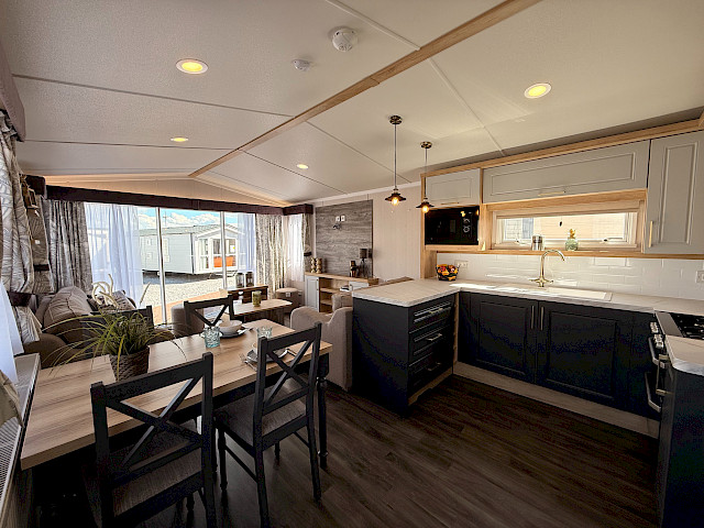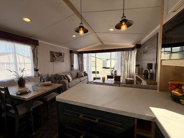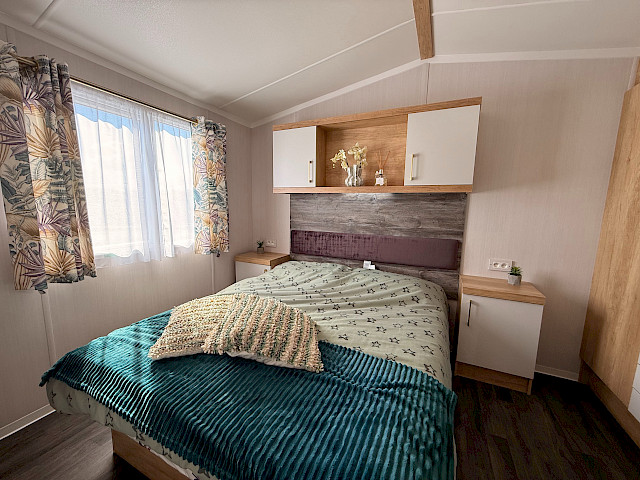 Le Swift Bordeaux est aménagé avec beaucoup de style, un hébergement de vacances qui est non seulement tendance, mais aussi très pratique. Le salon du Bordeaux est très lumineux grâce aux grandes portes coulissantes à l'avant du chalet. Il dispose également d'une cuisine en U luxueuse avec de beaux détails et un mobilier confortable.  Le Bordeaux est disponible avec une belle salle de bains. Le Swift Bordeaux est le chalet de loisirs idéal pour créer de beaux souvenirs avec vos proches.