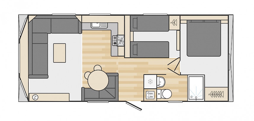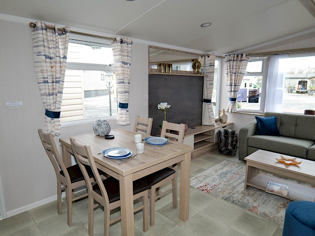Le Loire est léger, ludique, fonctionnel et inspiré par le littoral. Vous avez le choix entre des modèles de 10 et 11 mètres de long. La Loire est vraiment un chalet de loisirs familial, avec un bon rapport qualité/prix et des possibilités très étendues. Dans le salon, par exemple, vous trouverez une banquette d'angle spacieuse qui peut également être utilisée comme canapé-lit. La cuisine spacieuse est équipée de solides poignées en acier inoxydable et d'appareils électroménagers de luxe. Les chambres sont équipées de matelas de luxe et d'une connexion TV. Vous êtes curieux ? N'hésitez pas à venir voir ce modèle dans notre showroom.