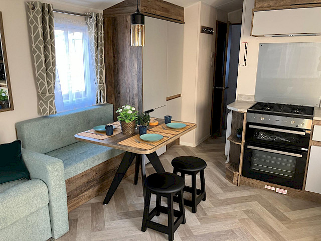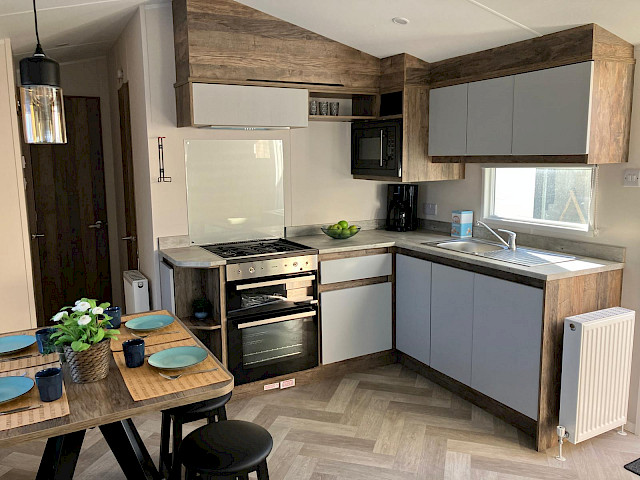 Le Willerby Brookwood est unique grâce à son grand salon ouvert, son élégant bar et son éclairage luxueux et respectueux de l'environnement. Le meuble de salle de bains luxueux, les toilettes attenantes à la chambre principale et la cuisinière équipée d'un four font de ce mobil-home un lieu de vie tout confort. Le Willerby Brookwood est l'environnement idéal pour profiter pleinement de la vie.