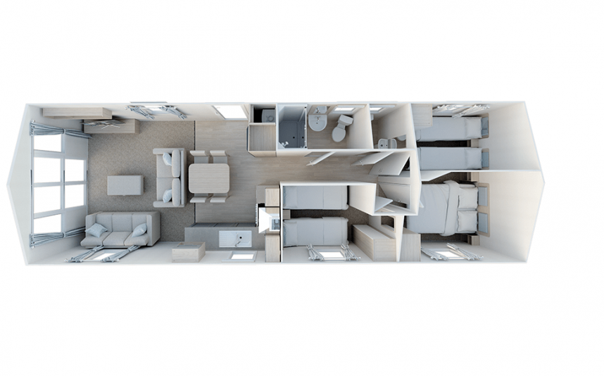 Le Willerby Malton est tout nouveau dans notre gamme. Un modèle frais avec un revêtement extérieur bleu-gris et de solides tuyaux d'évacuation noirs. Ce Malton dispose de deux chambres et est entièrement équipé. Il est l'un des rares à disposer d'une connexion TV dans les deux chambres et bien sûr dans le salon. Vous pouvez donc regarder la télévision dans chaque pièce.