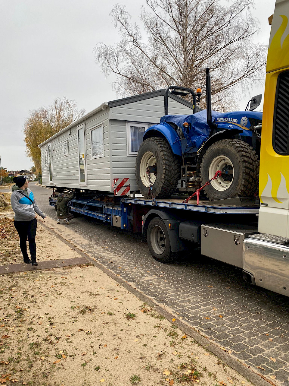 Als das Chalet anschließend nach Kahl gebracht wurde, feierten wir diesen Tag mit Schmalzbrot und Glühwein. Wir schauten mit großer Bewunderung zu, wie das Team von De Bergjes unser Chalet mit äußerster Präzision aufstellte. Und als es schließlich stand… was für ein Glücksmoment!
